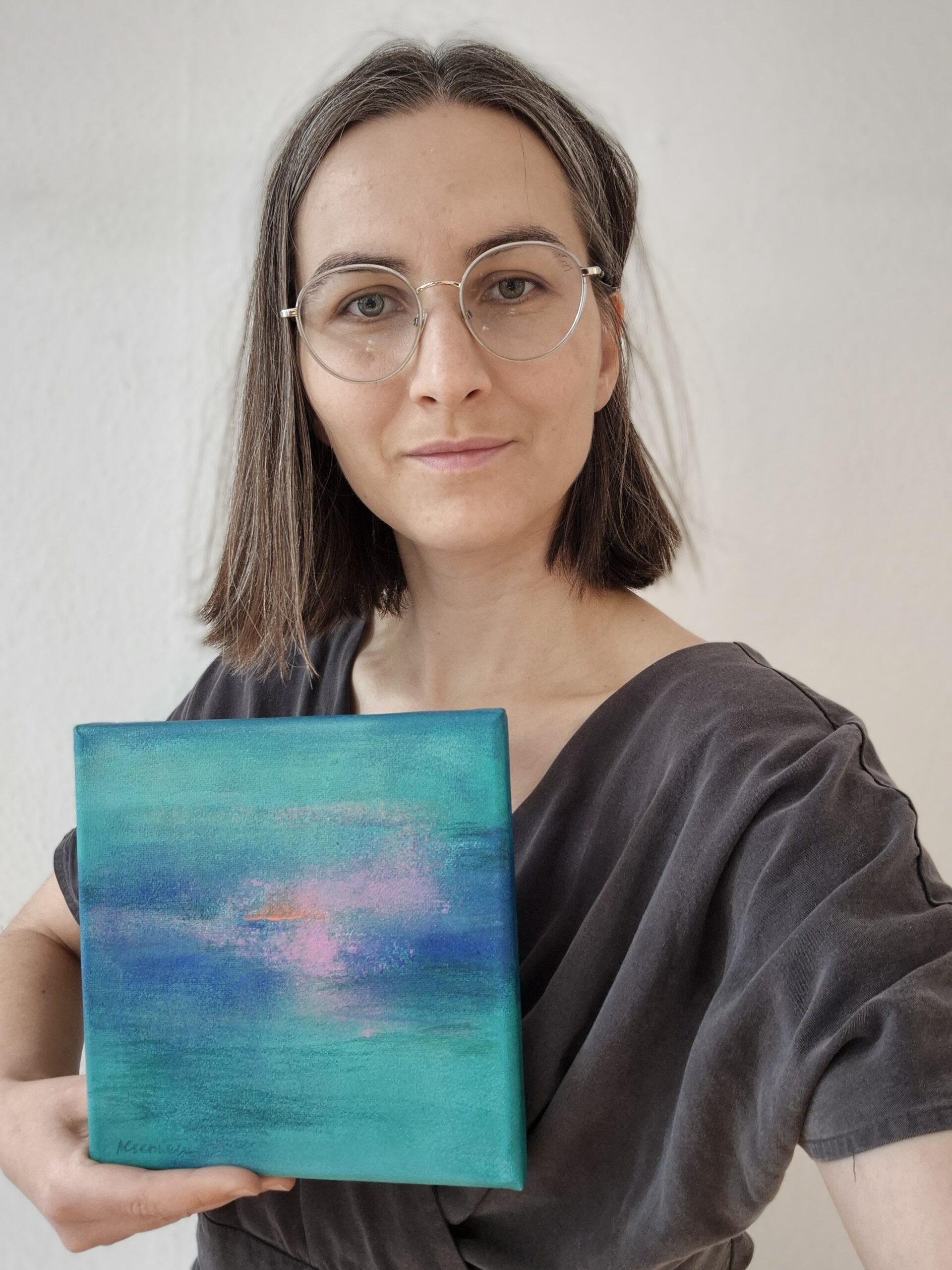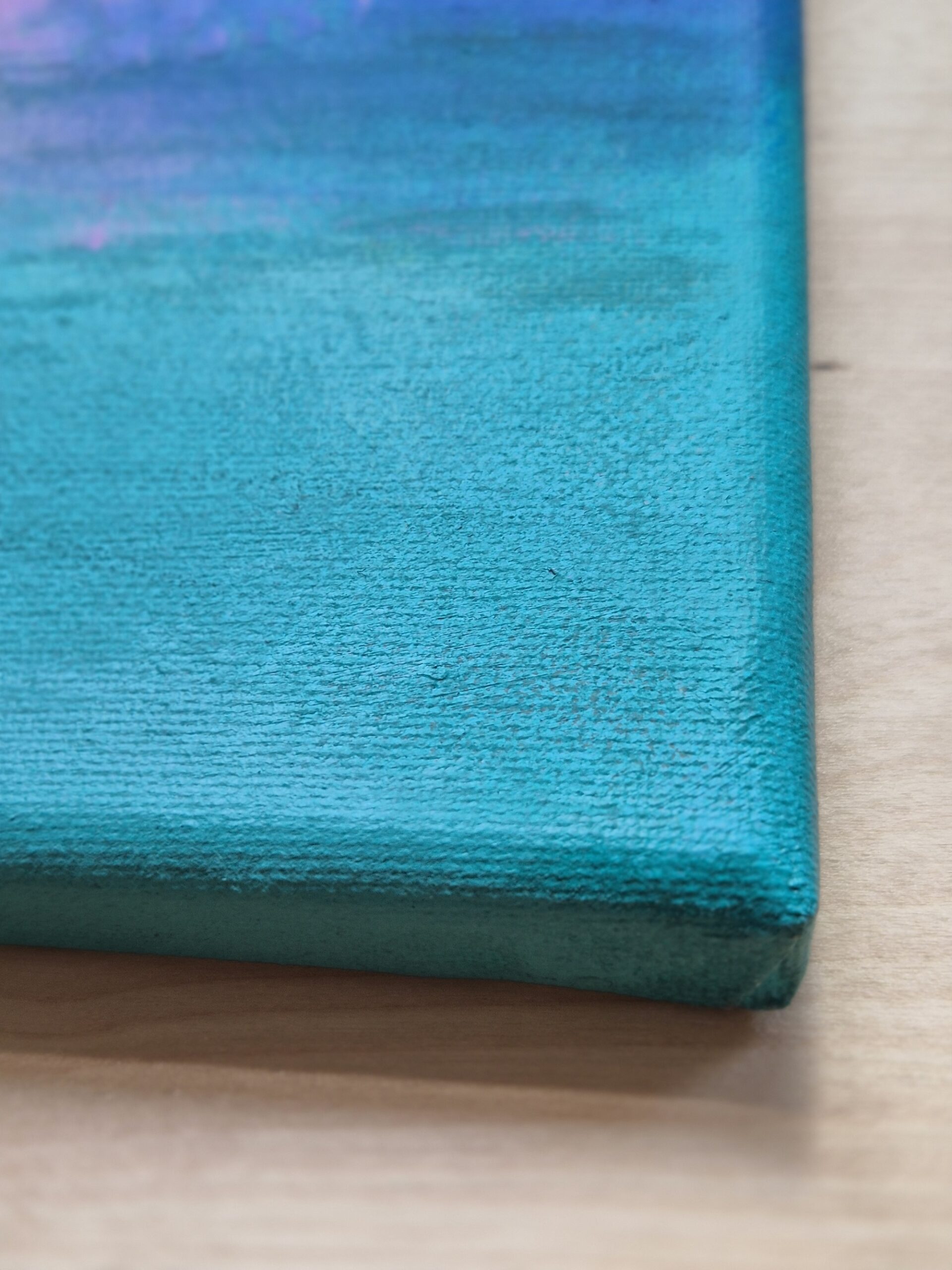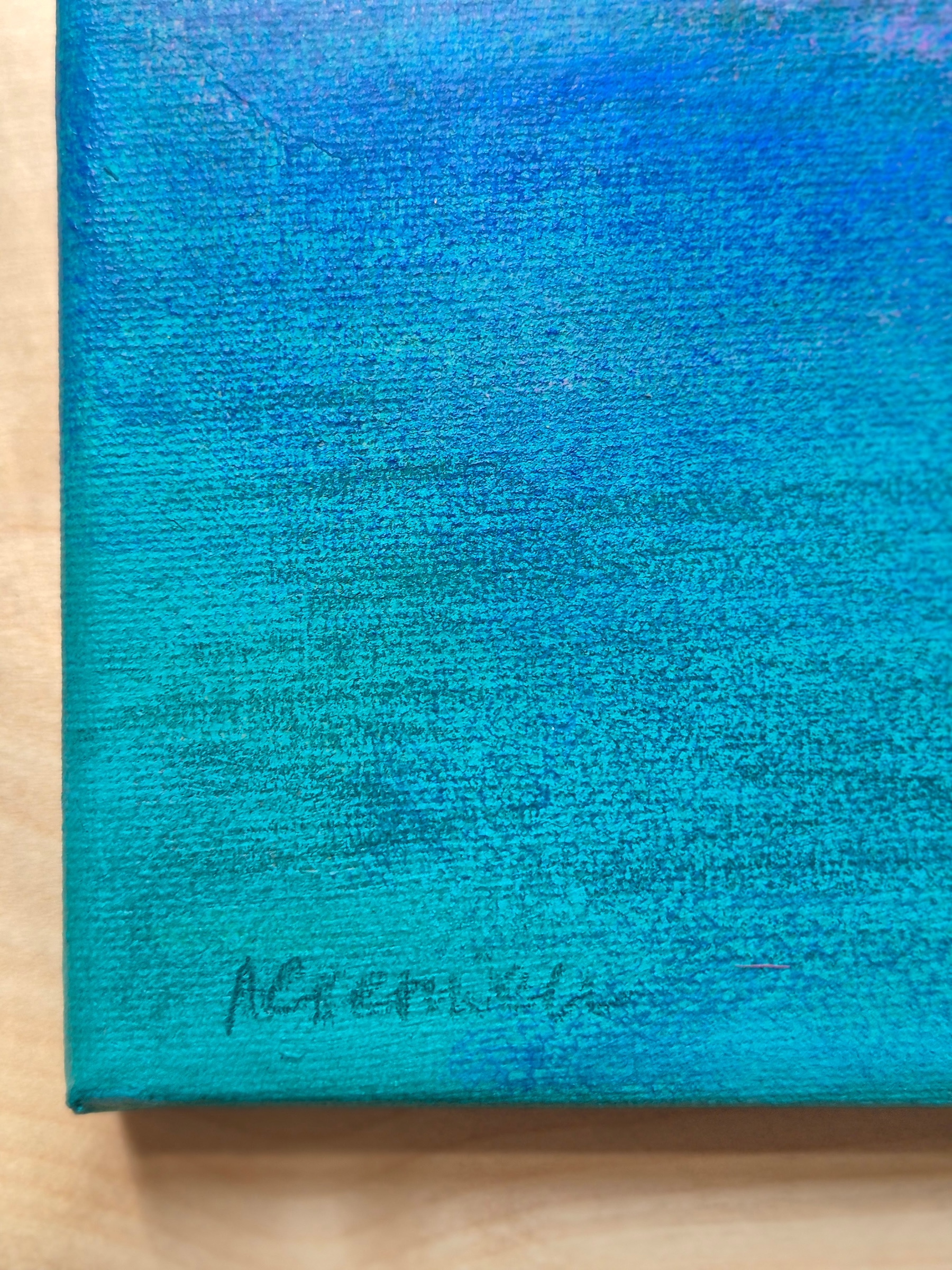 Zaczęłam malować ten obraz w lutym 2025, a potem do niego wróciłam w maju. Pracowałam wtedy nad kilkoma obrazami na raz - to jeden z 4 drobnych obrazów, które pomogły mi zachować "flow" gdy czekałam, aż większy obraz wyschnie.