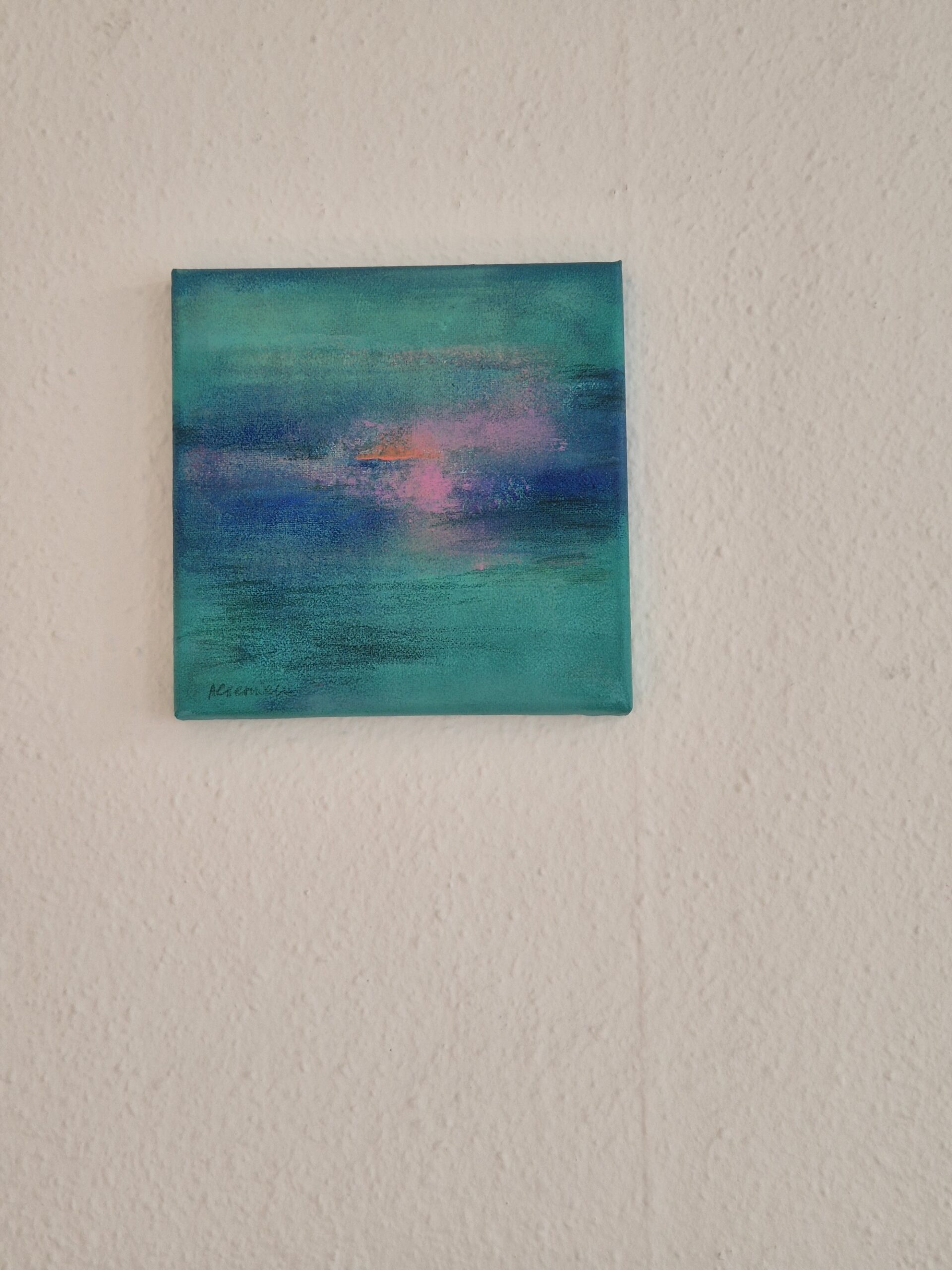 Obraz w technice mieszanej (akryl + kredka) na płótnie o wymiarach 20x20 cm.