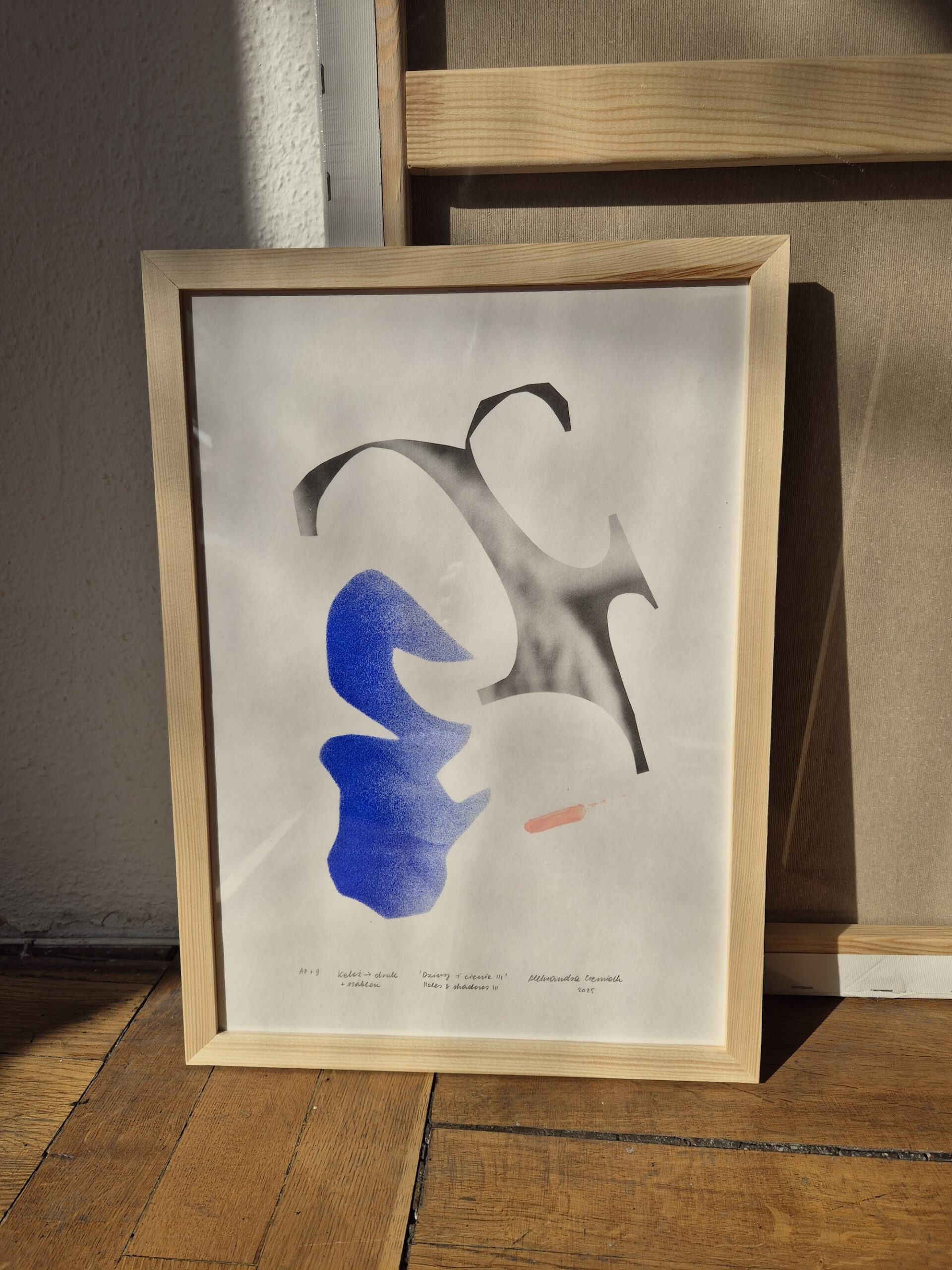 Each of prints, including this one, is made in just 10 copies – 9 of them for sale (one stays with me), signed and numbered accordingly to my liking it the most. A3 paper size (29,7 x 42 cm). Nice, artsy, off-white paper, something about 150g.