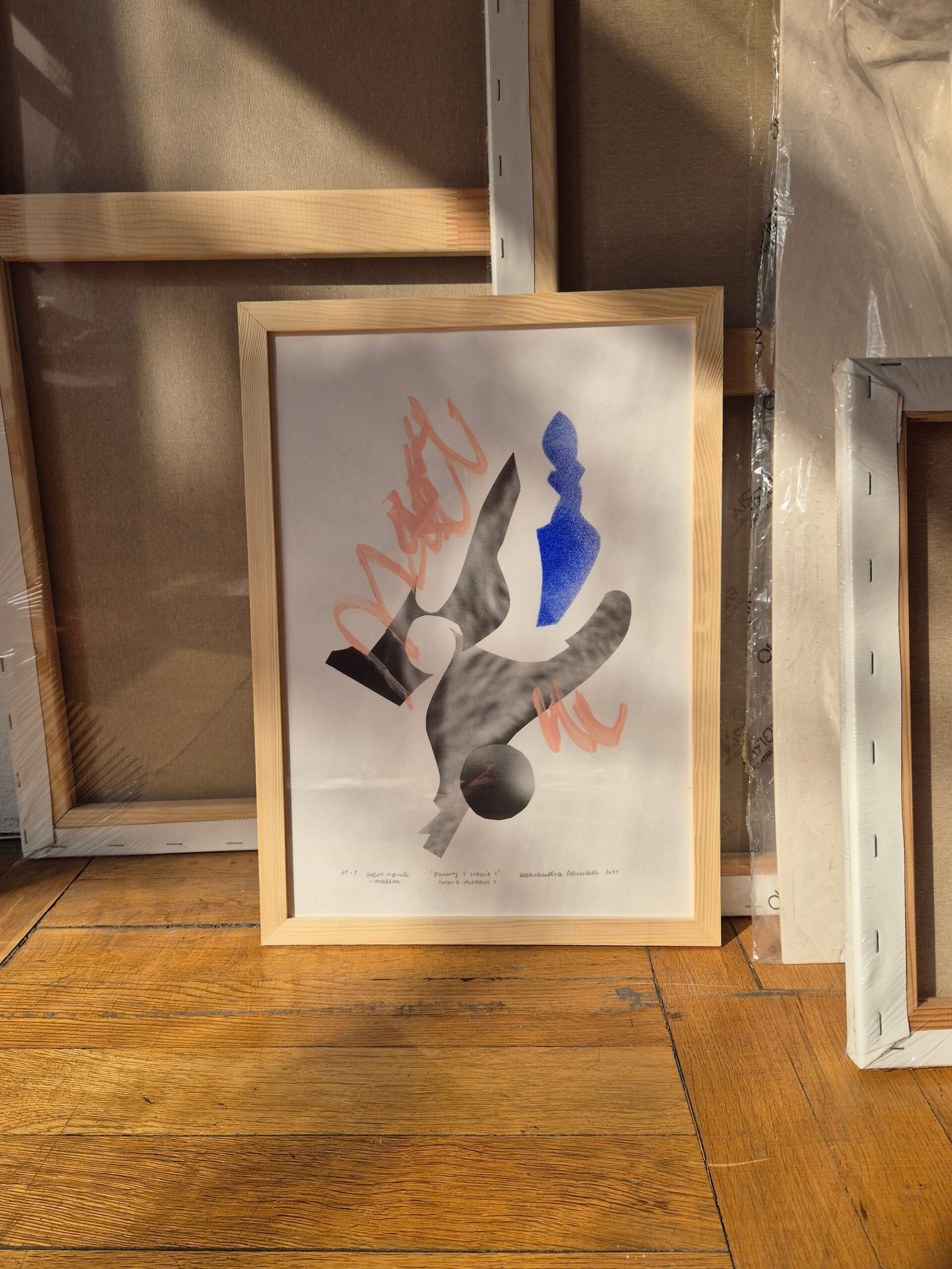 Each of prints, including this one, is made in just 10 copies – 9 of them for sale (one stays with me), signed and numbered accordingly to my liking it the most. A3 paper size (29,7 x 42 cm). Nice, artsy, off-white paper, something about 150g.
